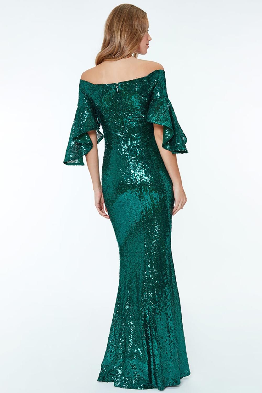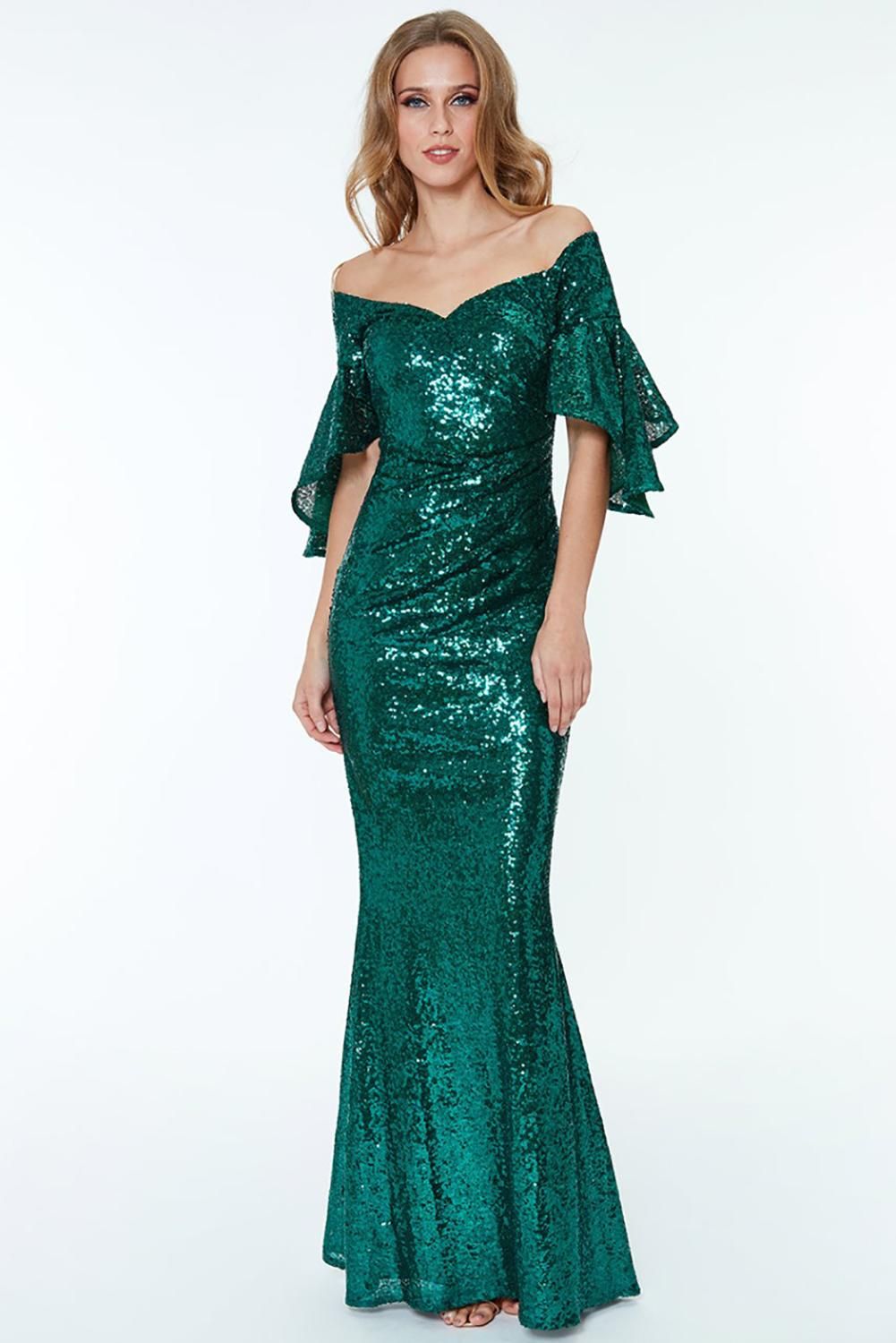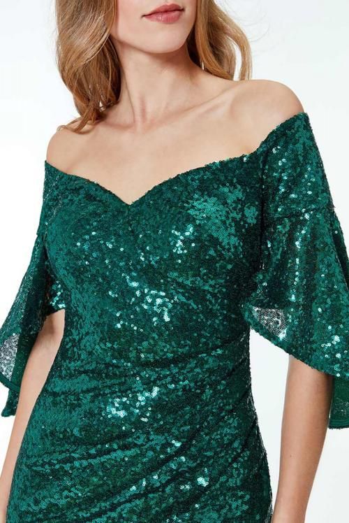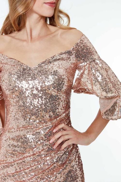 Apricot Off The Shoulder Sequined Maxi Dress