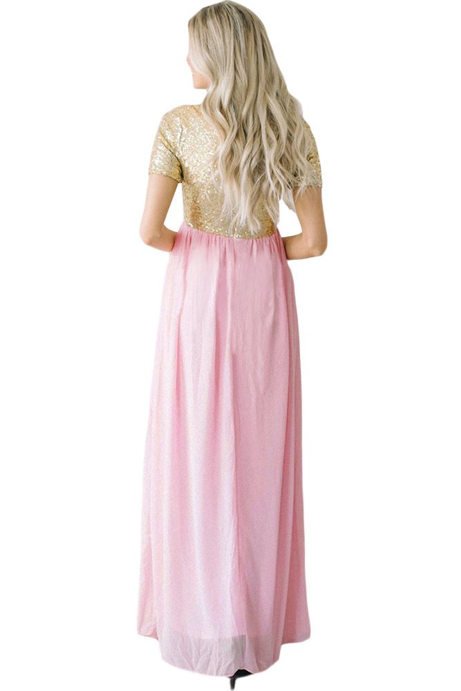 Gold Chiffon Sequin Zipper Back Maxi Dress
