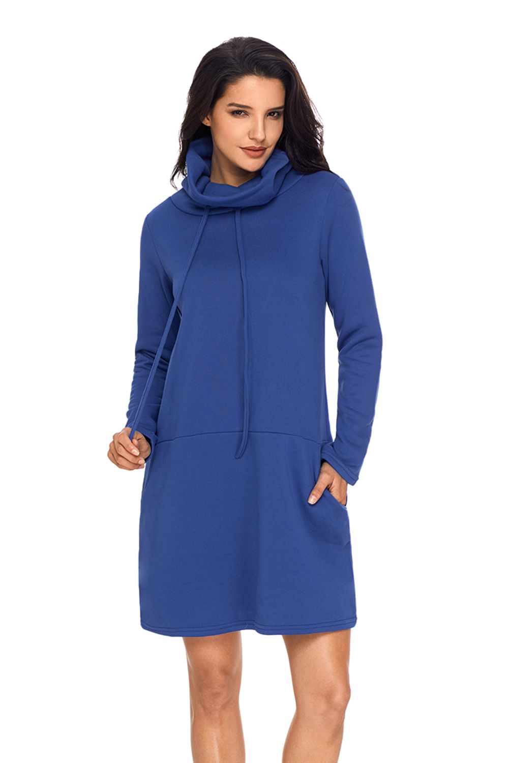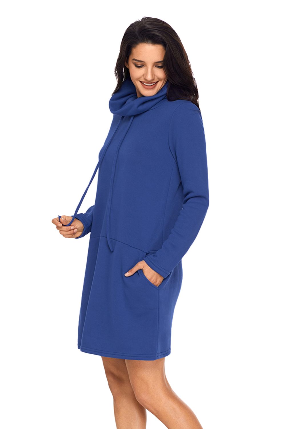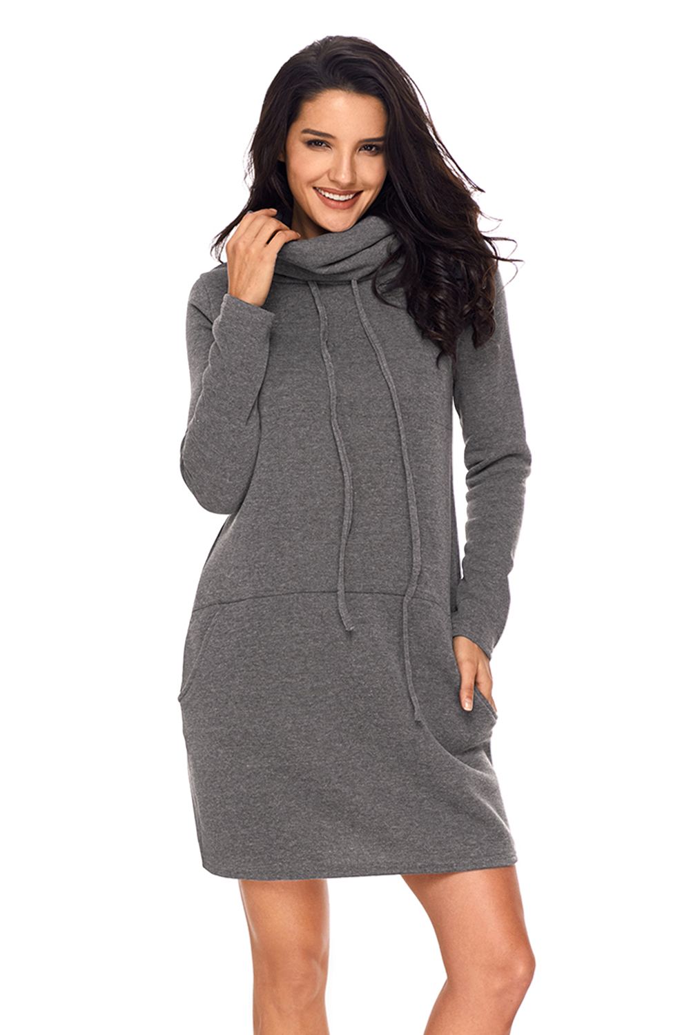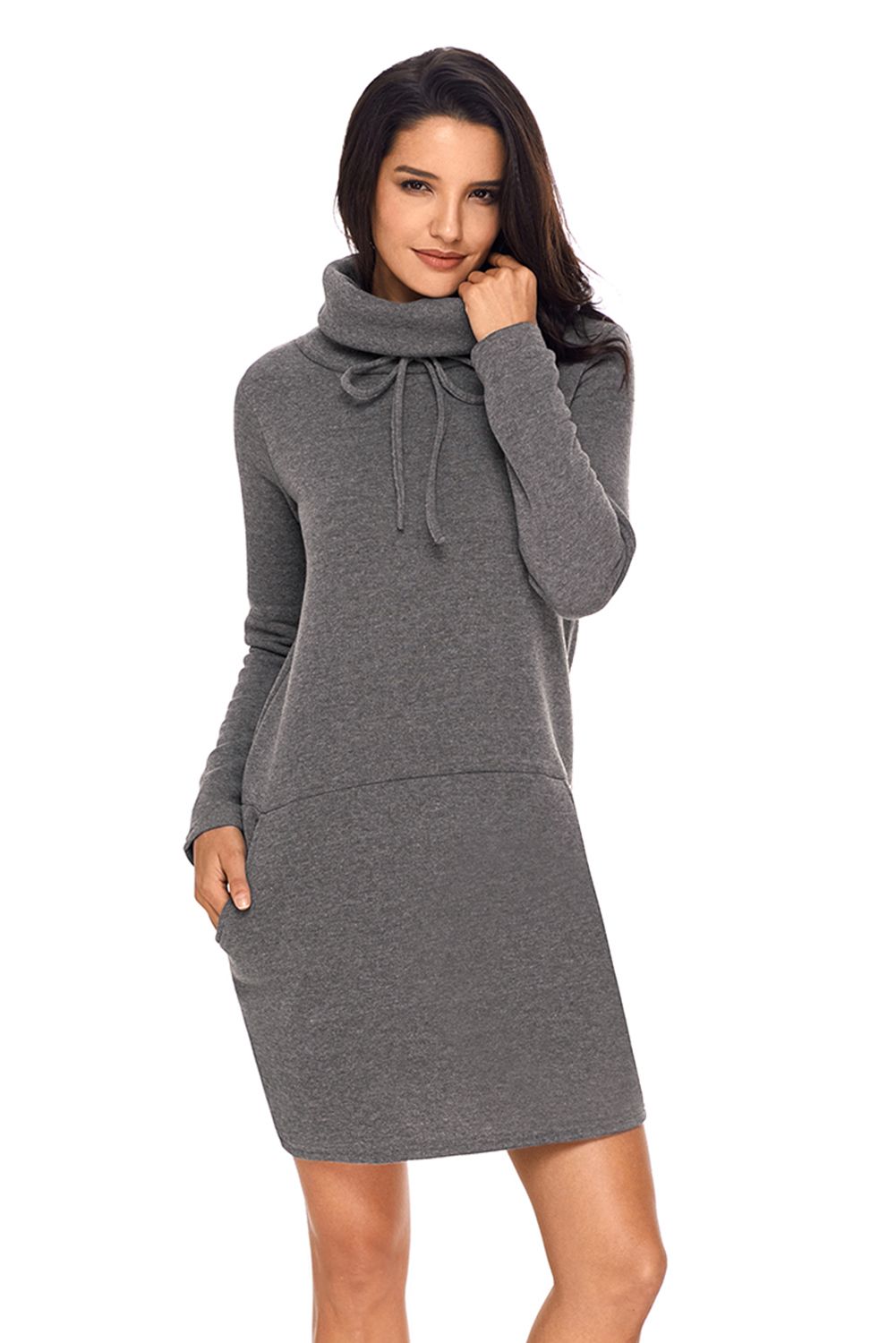 Grey Drawstring Cowl Neck Sweatshirt Dress