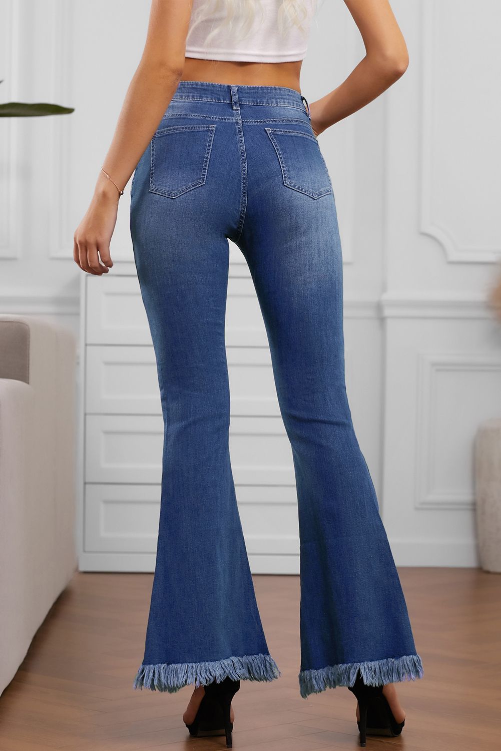 Flared pants perfectly modifies the shape of the legs for slender legs