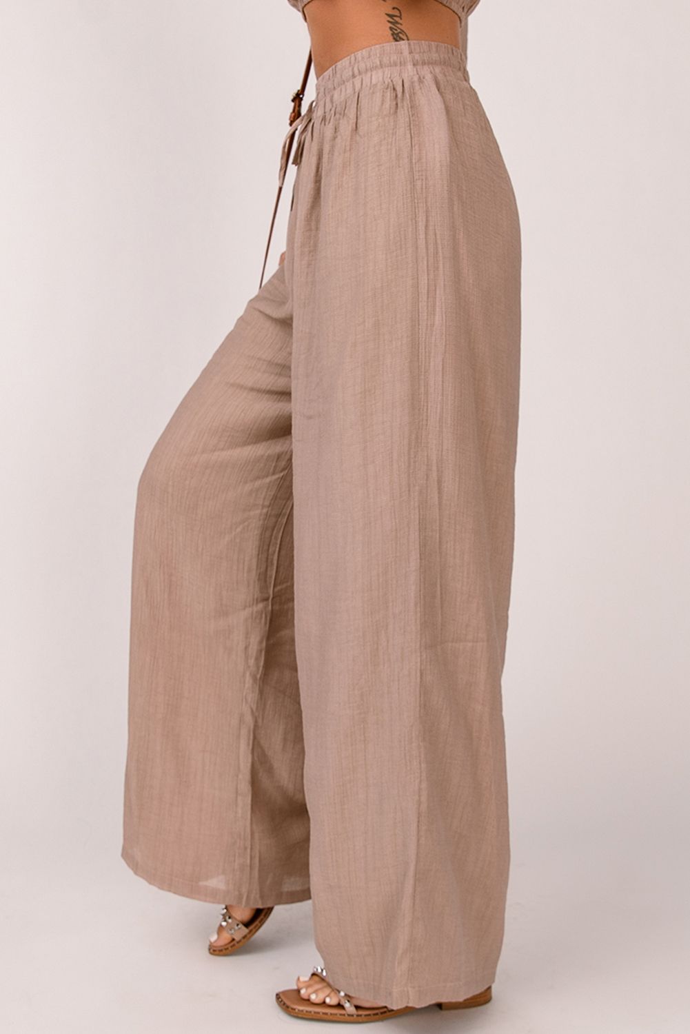 Khaki High Waist Drawstring Wide Leg Casual Pants