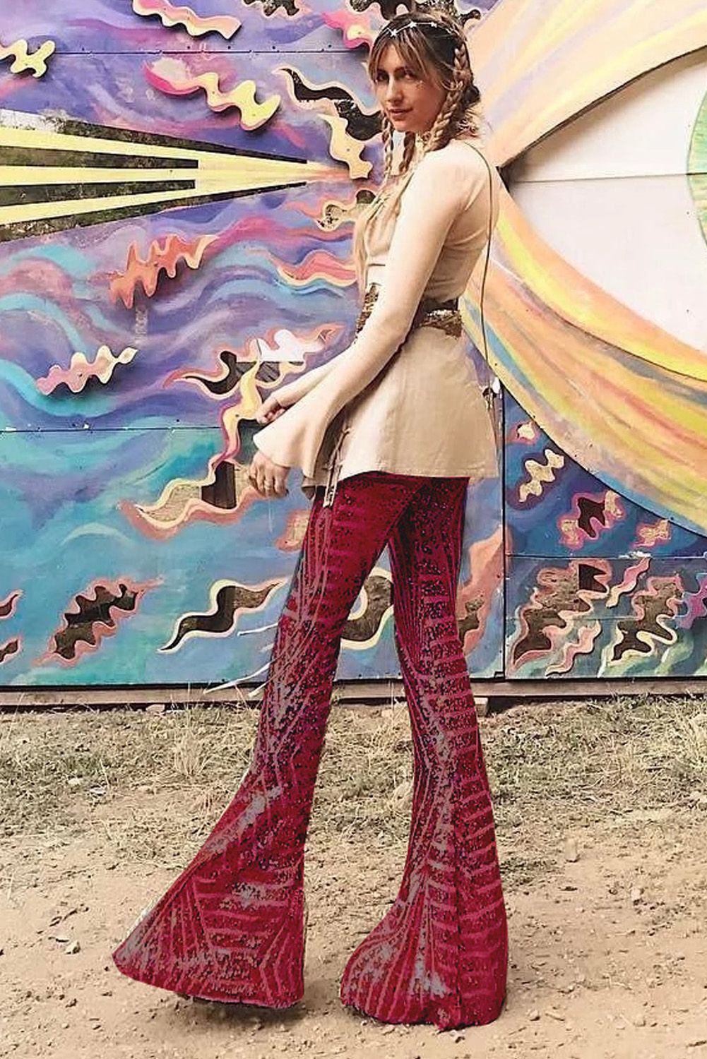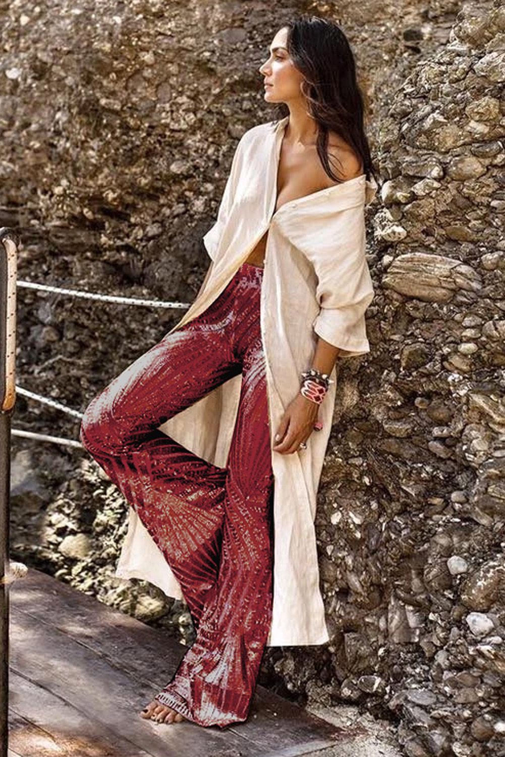 Red Sequin Wide Leg Pants