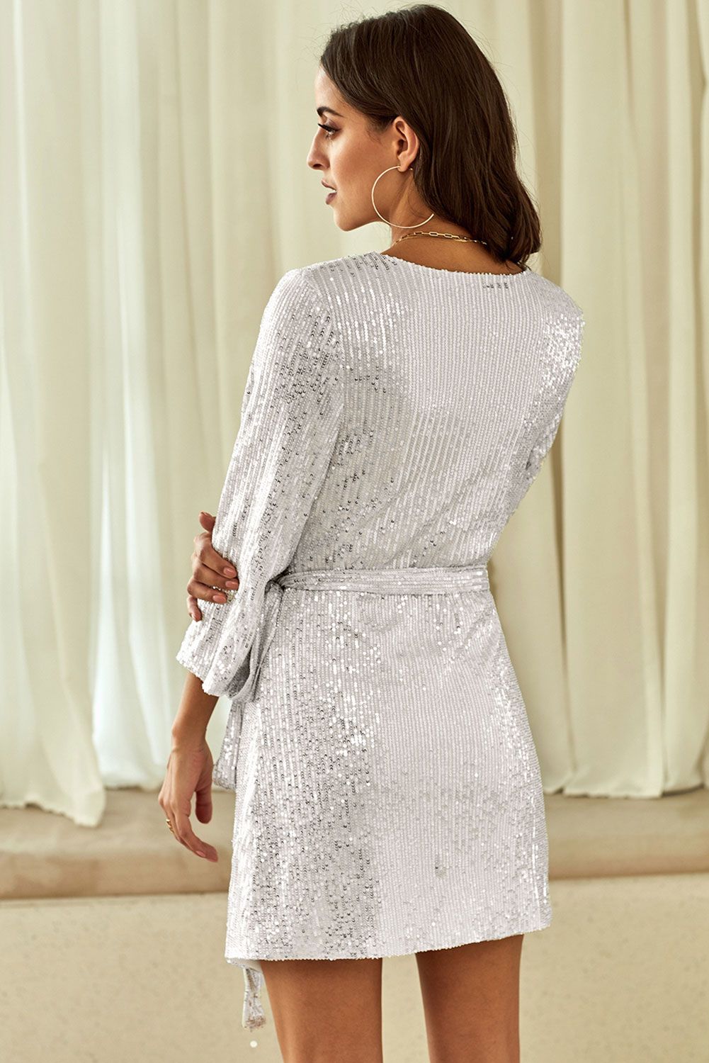 Silver Sequin Wrap Dress with Sash