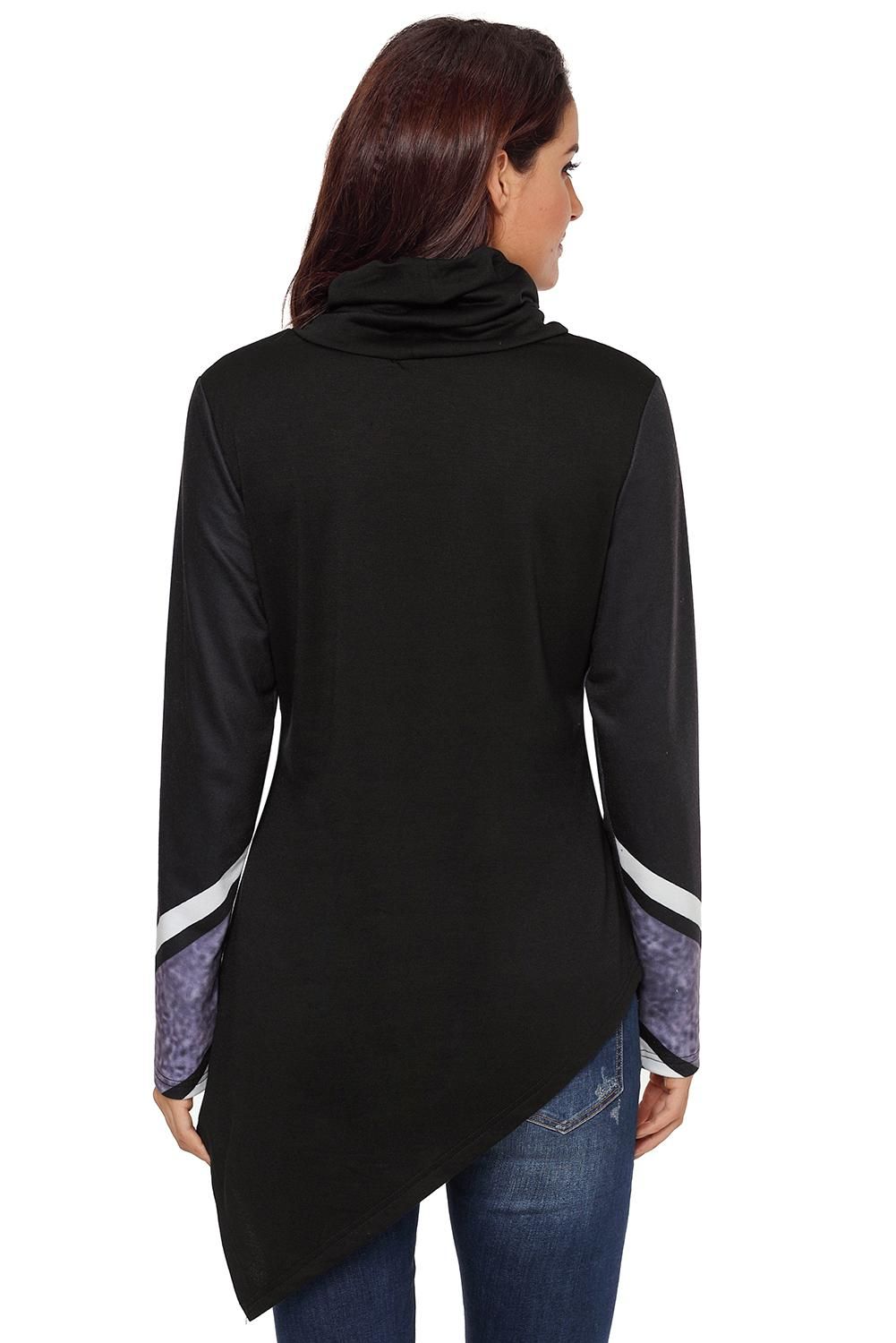 Black Asymmetric Hemline Printed Cowl Neck Sweatshirt