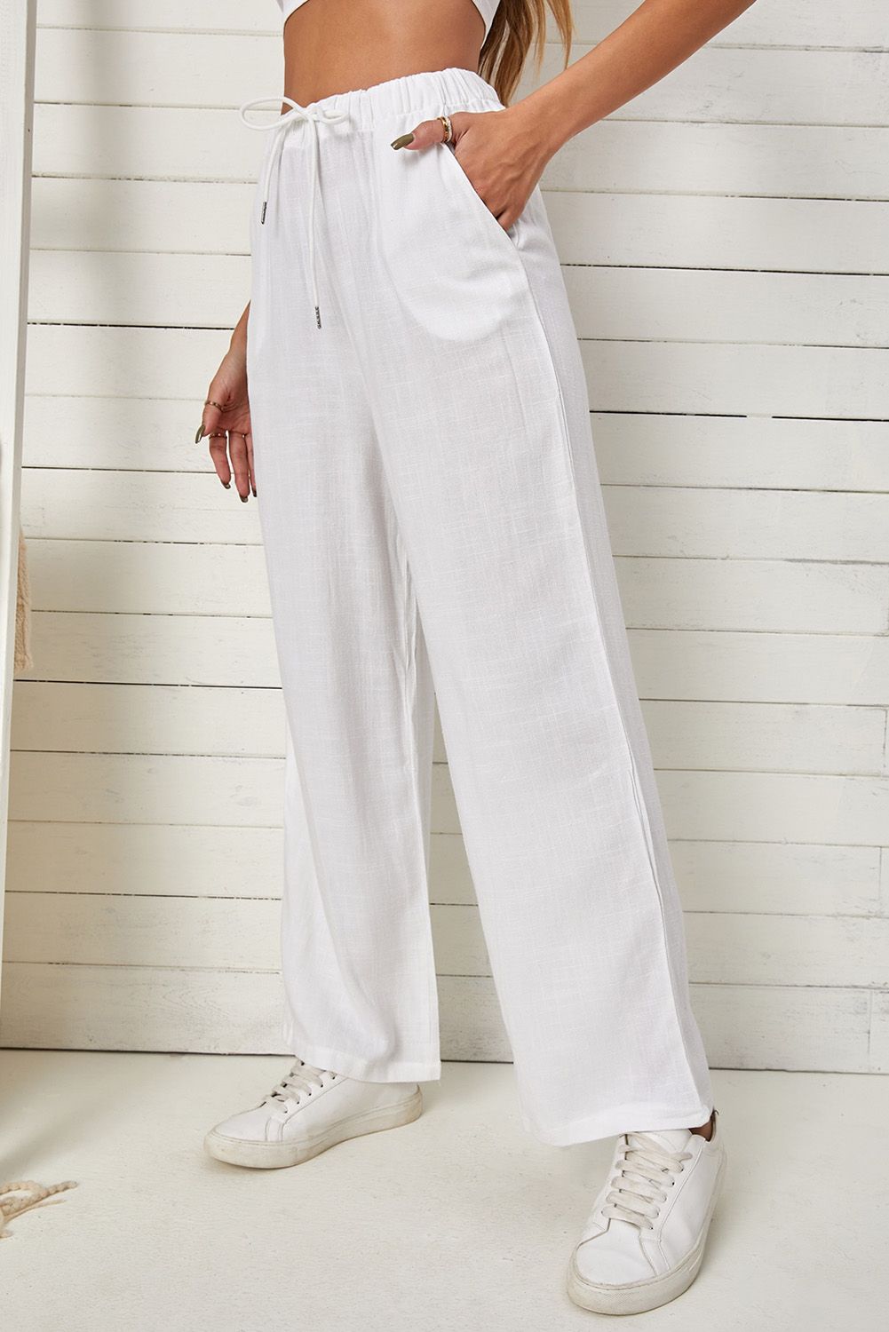 Solid color wide legs pants easily paired with a cropped sweater, crop tank tops, t-shirts and so on