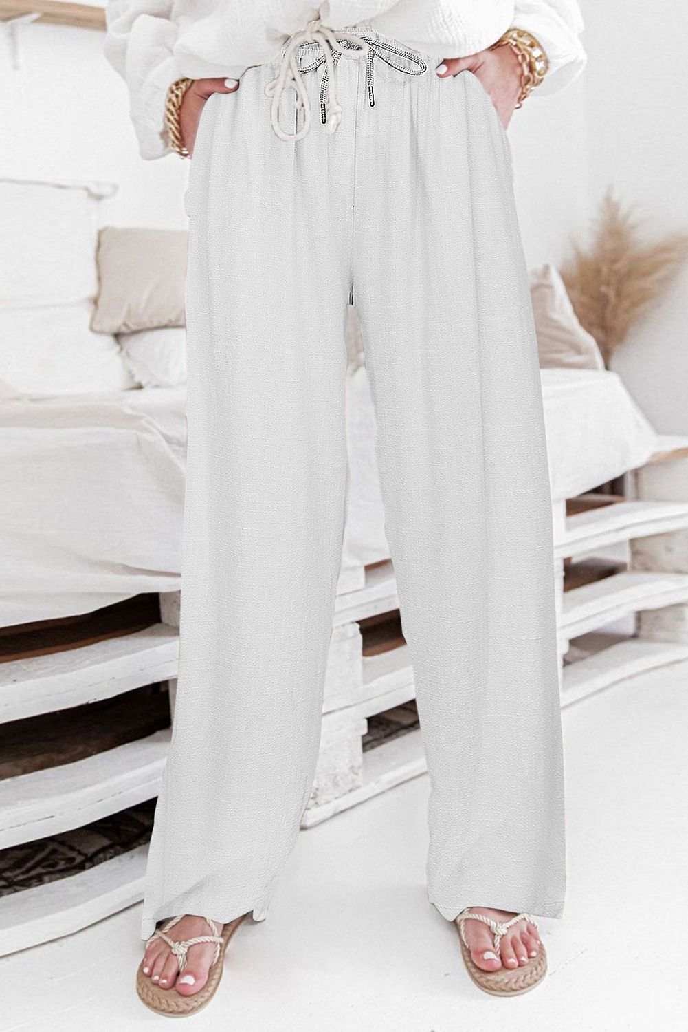 It features an elastic waistband, high drawstring waist, baggy solid color design, wide leg suitable for all body shape